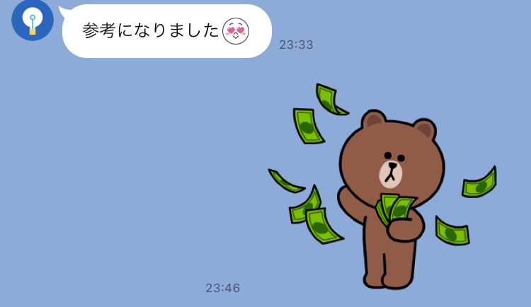 お礼のLINEをいただいたのであげさせてもらいますね~![]()